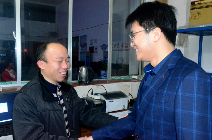 凌晨5:40時,朱董事長首先來到株洲長途汽車站,與員工們一一握手,致以新春的問候:“同志們,你們好!” “同志們,辛苦了!” “同志們,我給大家拜年了!”隨即踏上6:00時發(fā)往長沙的班車上,送上象征吉祥平安的慰問紅包,送上新春的祝福,囑咐其注意行車安全,并目送班車徐徐駛出車站。接著,董事長來到汽車中心站,先后向車站票房工作人員、三品檢查人員、服務(wù)班工作人員、GPS監(jiān)控人員和車輛安檢人員拜年,并向工作人員噓寒問暖。當(dāng)來到GPS監(jiān)控中心,董事長與車站和監(jiān)控工作人員親切交流,向其了解春節(jié)期間車輛運行情況,并囑咐監(jiān)控人員一定要積極負責(zé),要充分運用先進的高科技手段,將車輛動態(tài)監(jiān)控工作認(rèn)真落實到位,將隱患消滅在萌芽狀態(tài)。再接著,董事長相繼來到汽車北站、江南汽車站和汽車南站慰問一線員工。每到一處,都洋溢著春天的喜悅。尤其是在汽車南站,董事長與員工們一道細細品味著員工們親手泡制的姜糖茶,與員工們一道暢談企業(yè)的發(fā)展大計,與員工們一道憧憬著企業(yè)的美好未來,春天的歡樂氣氛更加濃烈
