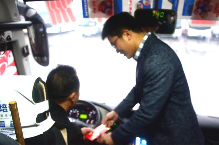 凌晨650時,董事長一行來到了長途汽車站,“同志們,辛苦了,大家新年好!我給大家拜年了!”董事長跟員工們一一握手問好,向員工們送上了祝福。員工們自發(fā)的站成一排,向董事長問好,拜年。7:18時,董事長登上發(fā)往長沙的班車,給旅客和司機(jī)送上了新年的祝福,并囑咐司機(jī)下雨一定要注意行車安全,并目送班車駛出車站。